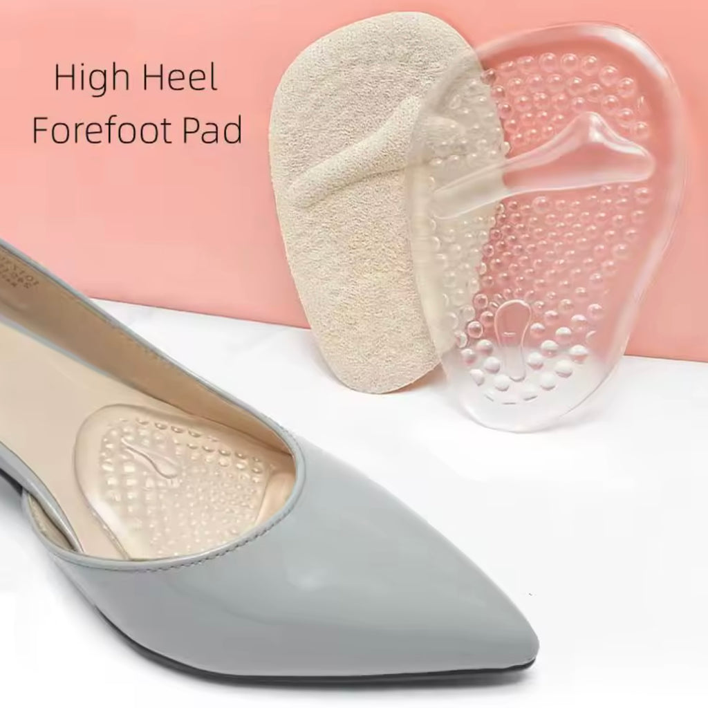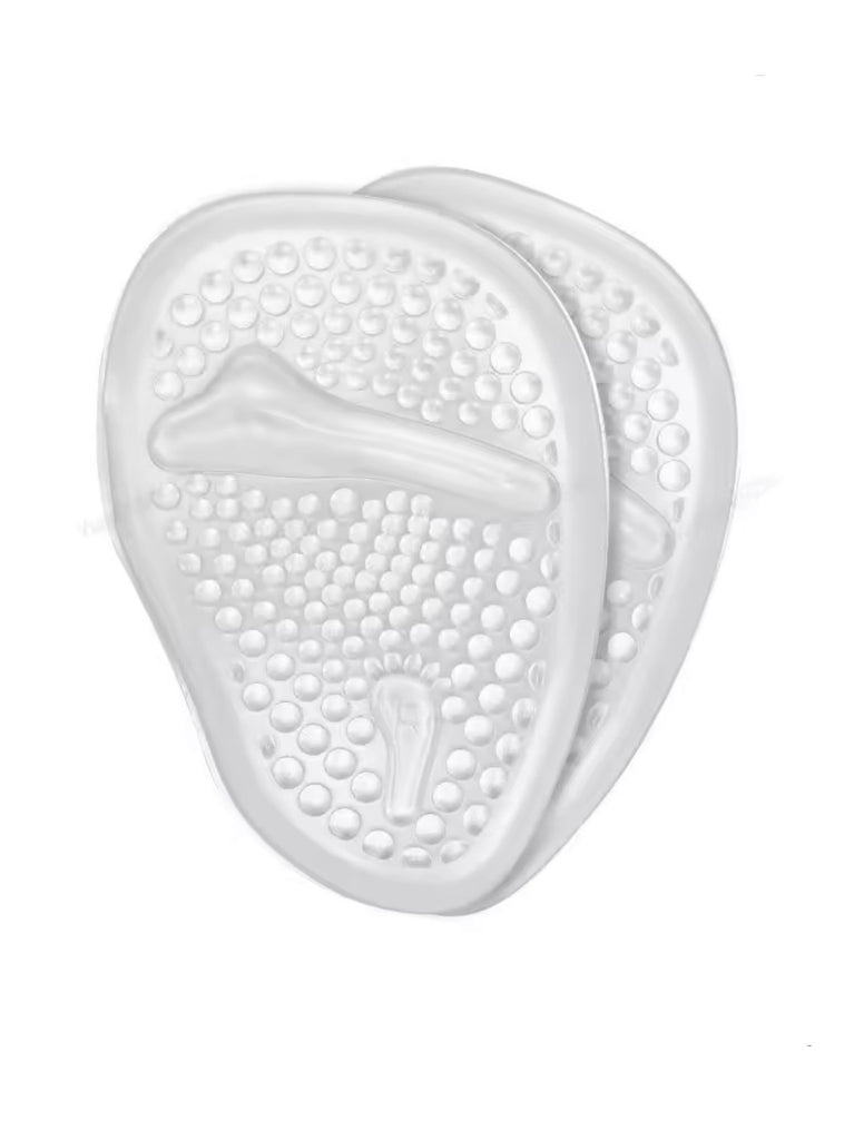 1 par (2 st) skoinlägg i silikongel som är dämpande för trampdynan och tårna och främjar att man halkar framåt vid användning av klackar. Perfekt när du ska gå i klackar hela dagen och behöver en hög komfort och minimalt tryck. Inlägget är i transparent silikon, självhäftande som tål att torkas av med vatten och tål fukt, kan torkas av och användas om och om igen!