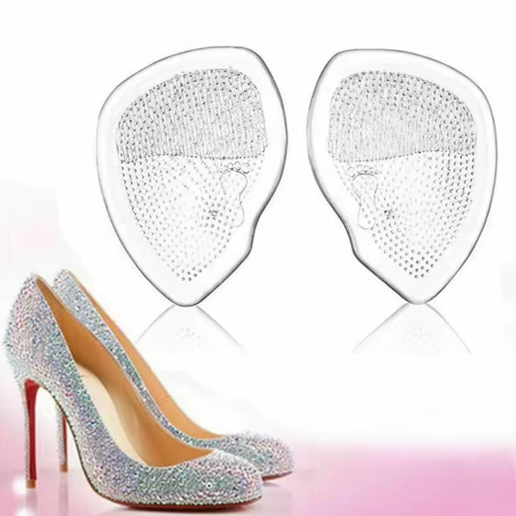 1 par (2 st) skoinlägg i tunn silikongel som är något dämpande för trampdynan och skapar friktion för att inte halka fram i skon. Inlägget är i transparent silikon som tål vatten och fukt, kan tvättas och användas om och om igen! Denna variant saknar klister.
