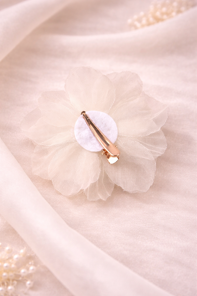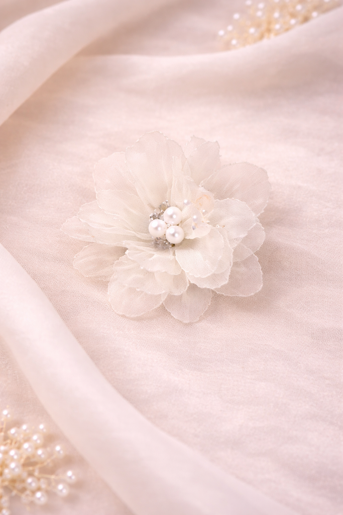 Blomma hårspänne benvit med stenar & pärlor
