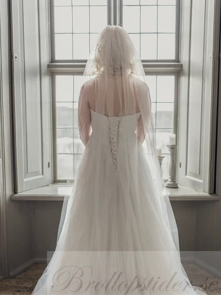 Elegant brudslöja, 2 meter i tyll med enkelt avslut nedtill, inkl. kam för enkelt fäste i håret.