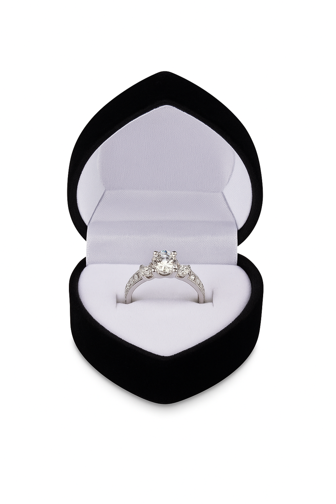 Ringask svart sammet hjärtformad (ringbox en ring)